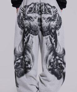 Jaded London Men’s Gothic Print Baggy Monster Joggers | Grey