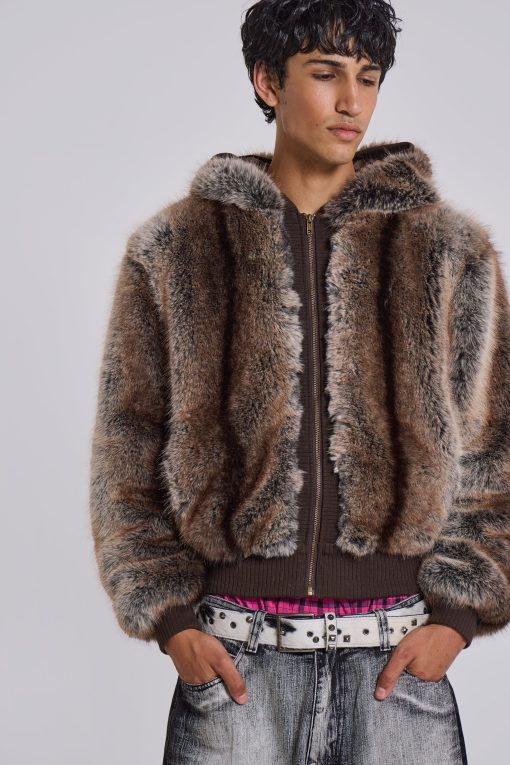 Jaded London Men’s Bear Faux Fur Hooded Jacket | Brown