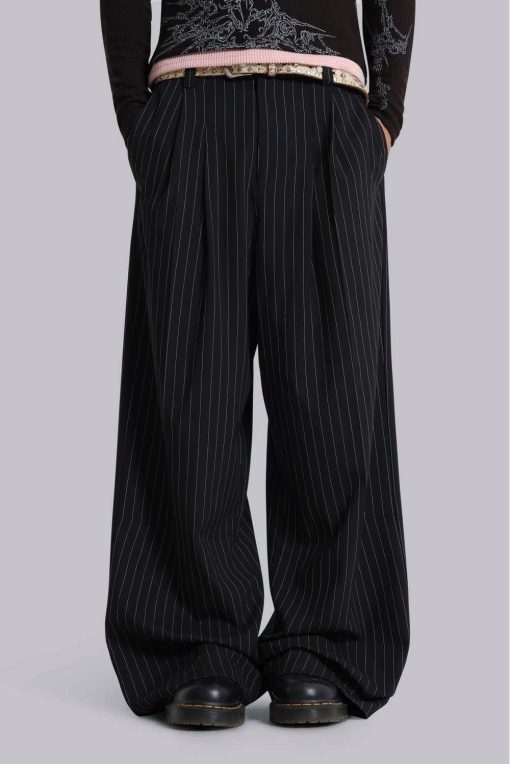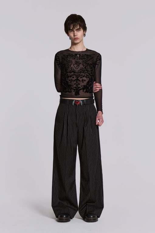 Jaded London Men’s Black Pinstripe Goliath Suit Pants | Black