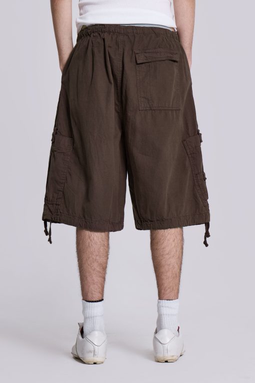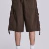 Jaded London Men’s Brown Parachute Cargo Baggy Shorts | Brown