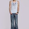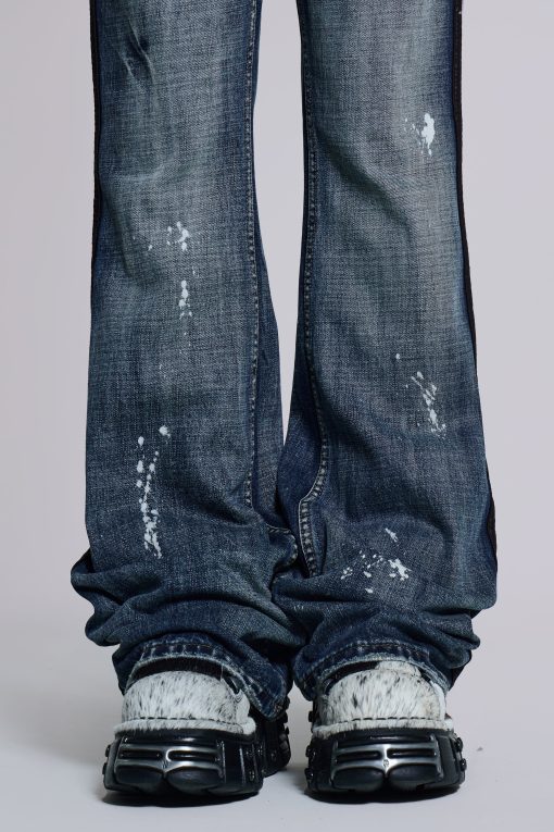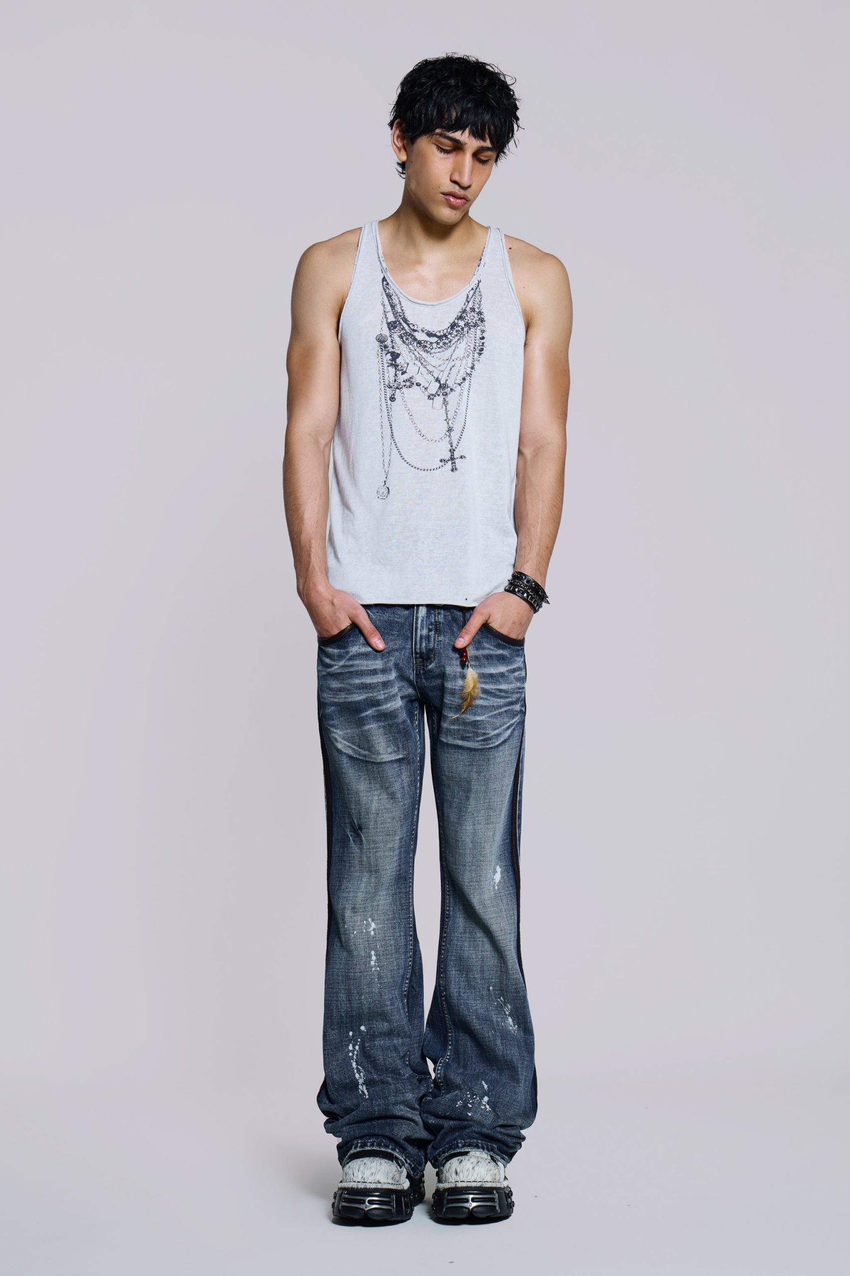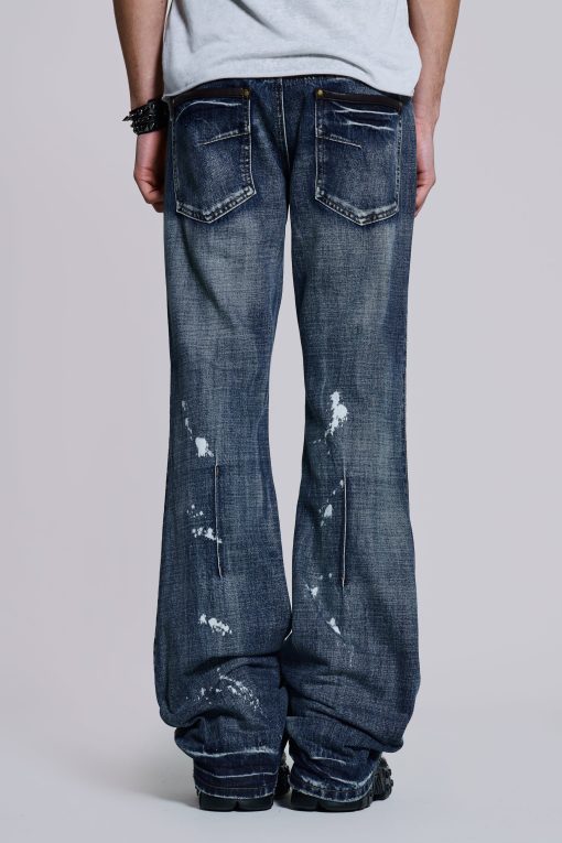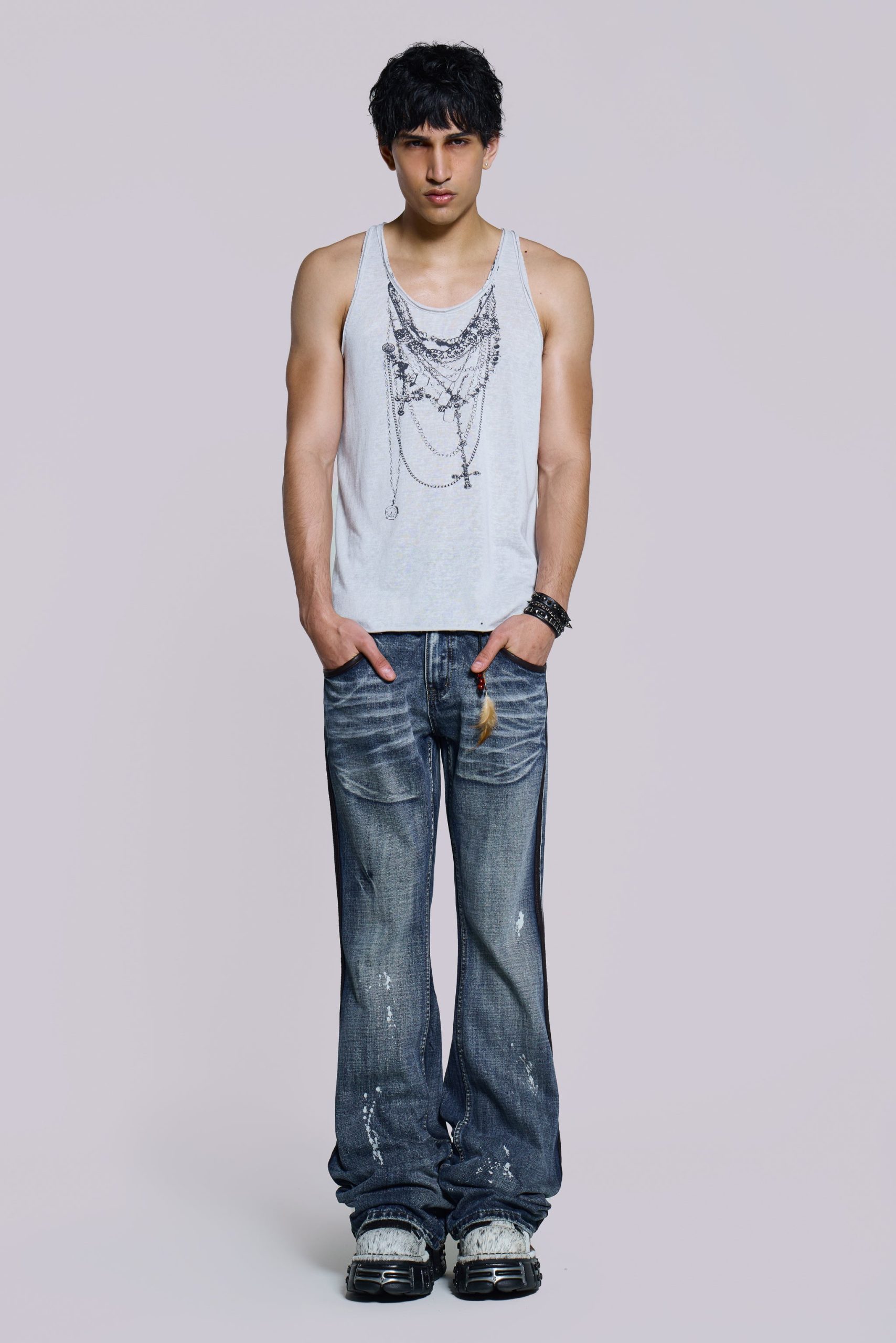 Jaded London Men’s Denim Vintage Blue Feather Drift Flared Jeans | Blue