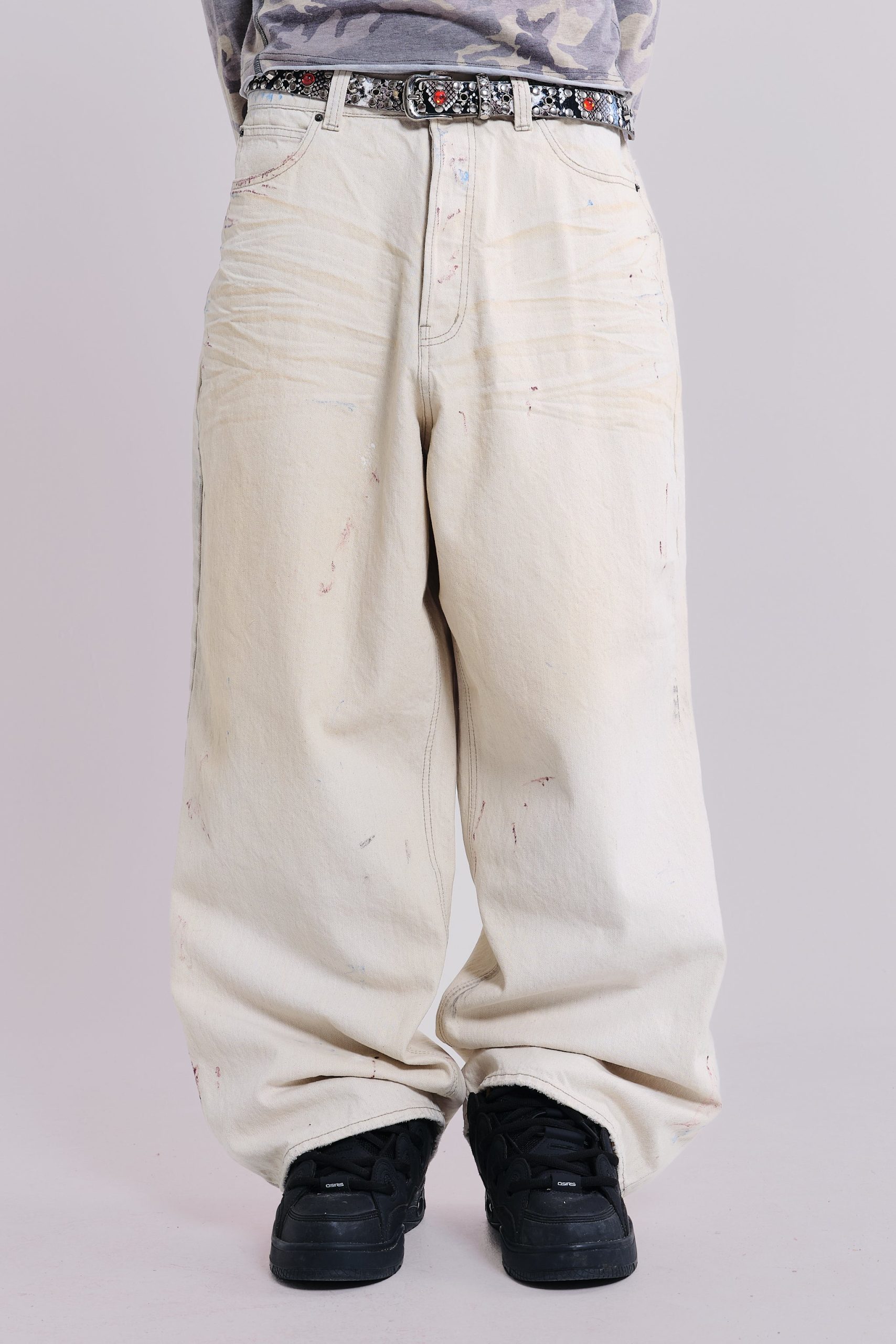 Jaded London Men’s Ecru Paint Colossus Jeans | Cream