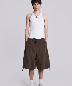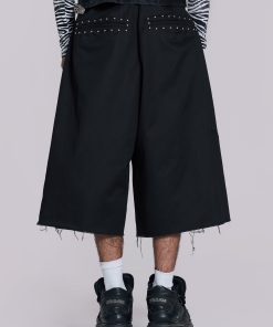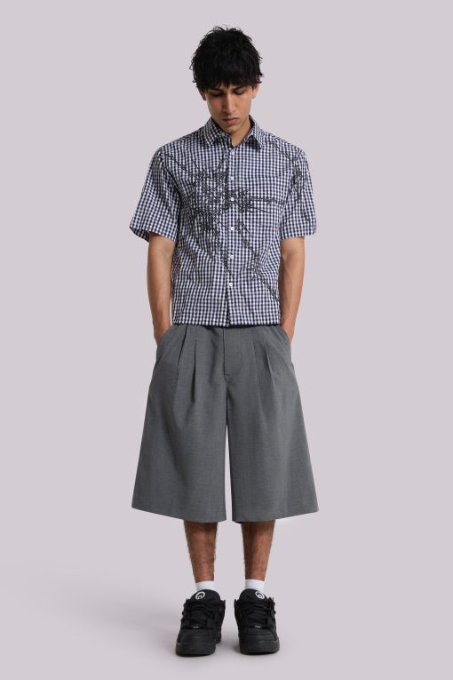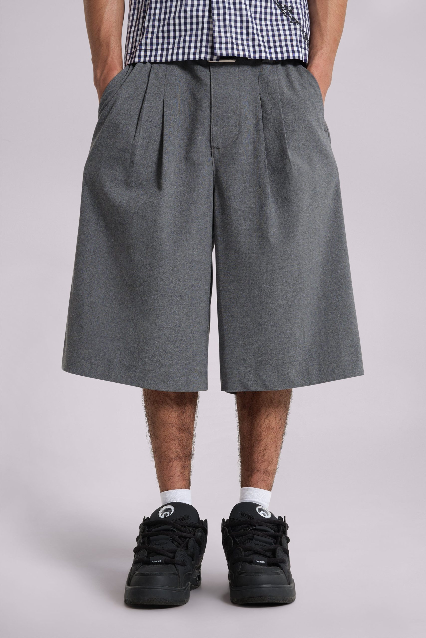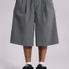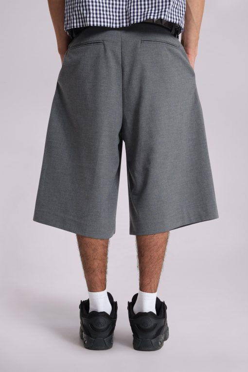 DescriptionCrafted in a cotton blend and designed with an oversized fit, these grey volume tailored shorts feature a fixed waistband with belt loops along with a twin pleat at the waistband for added volume and back jet pockets.