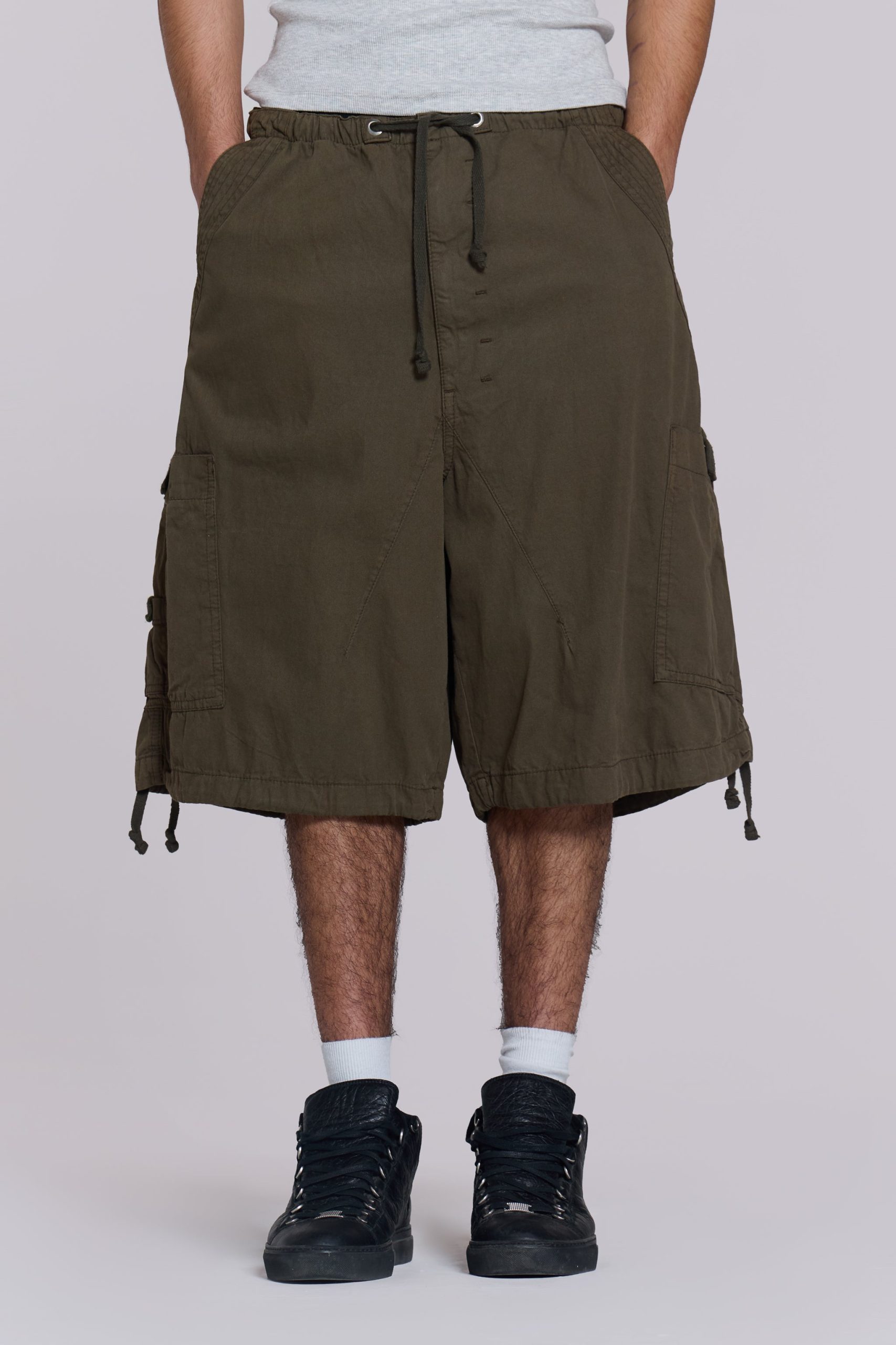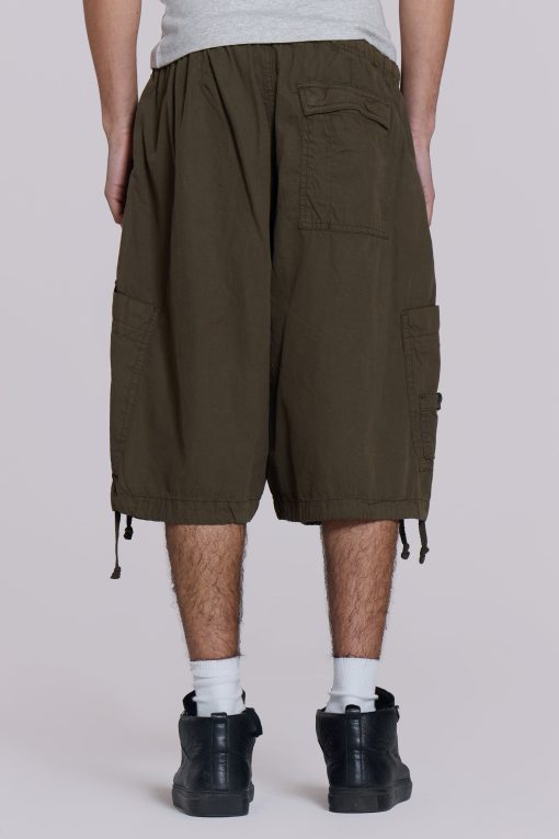 Discover the unparalleled comfort and style of the Khaki Parachute Cargo Baggy Shorts. These shorts feature an oversized fit and six-pocket styling, accompanied by an elasticated waistband and adjustable cotton drawcord for added flexibility.