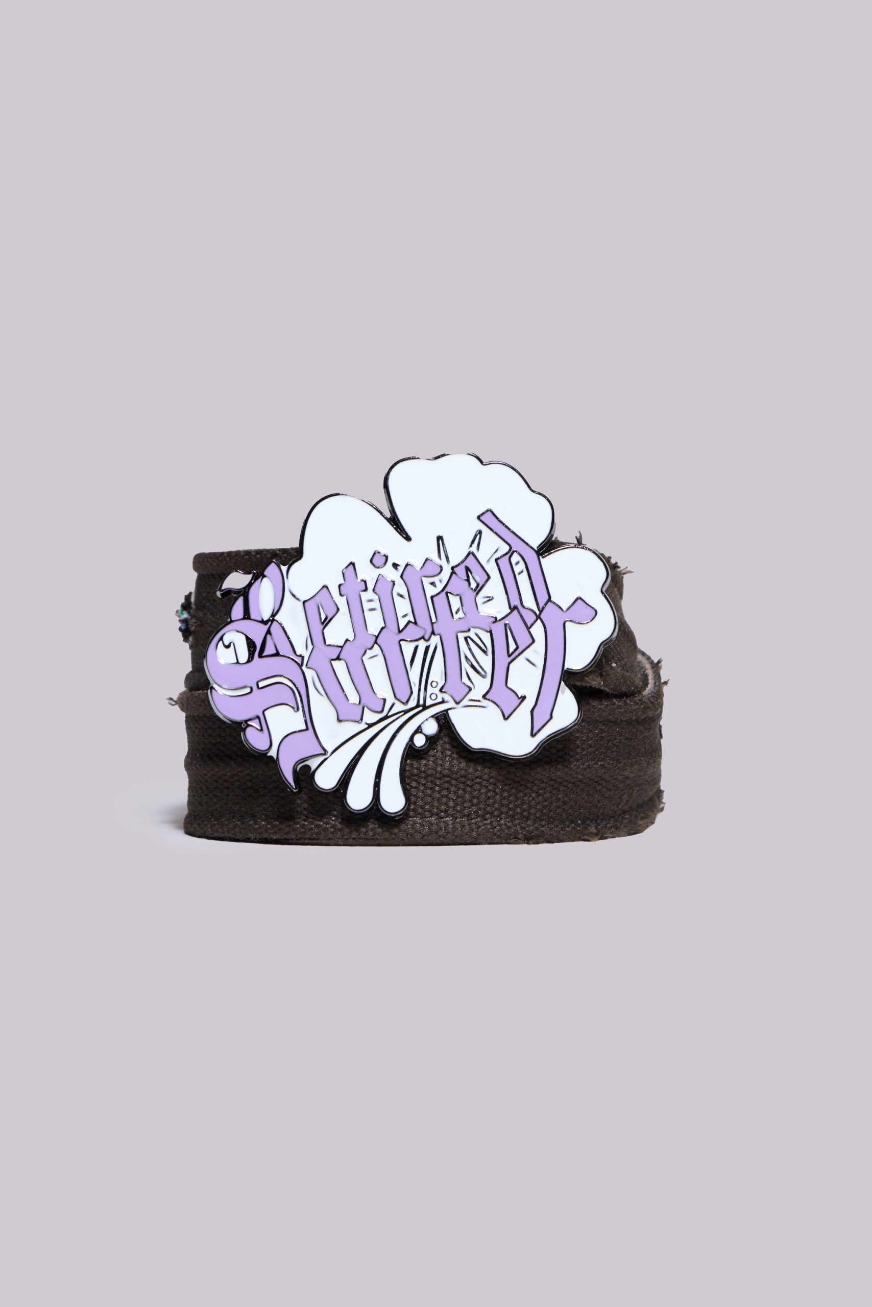 Upper: 70% polyester, 30% cotton. Back: 100% cow leather. Trim: 100% zinc alloy.