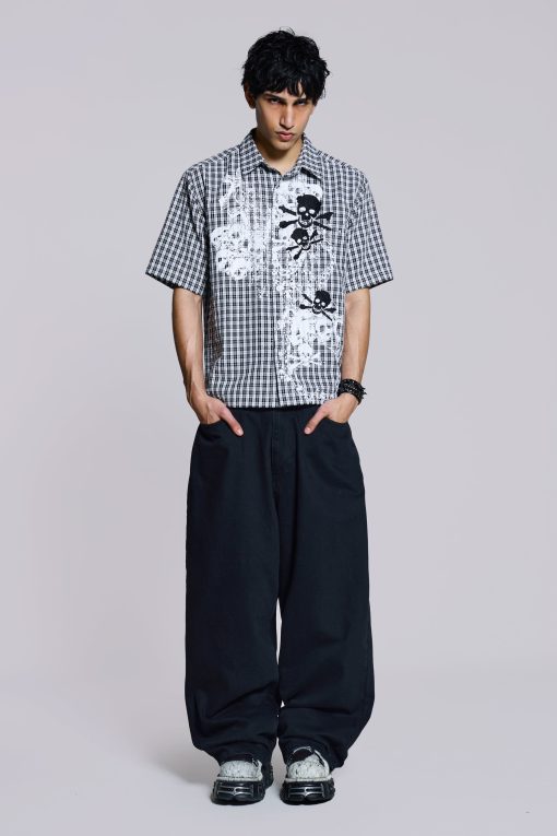 Jaded London Men’s Scattered Skull Shirt | Black & White