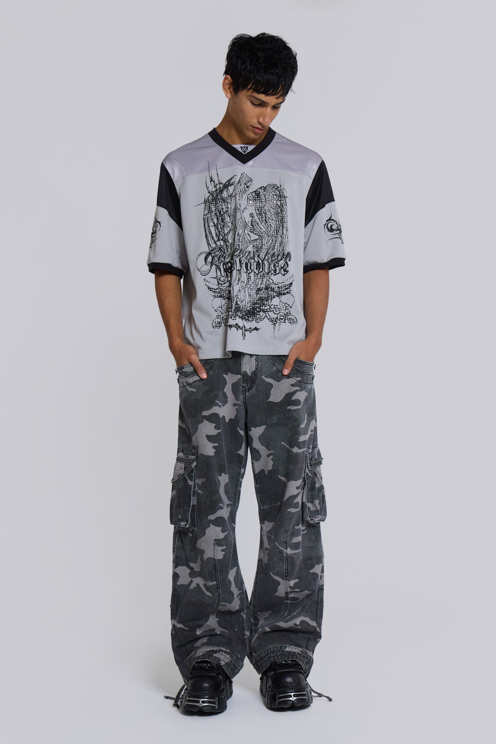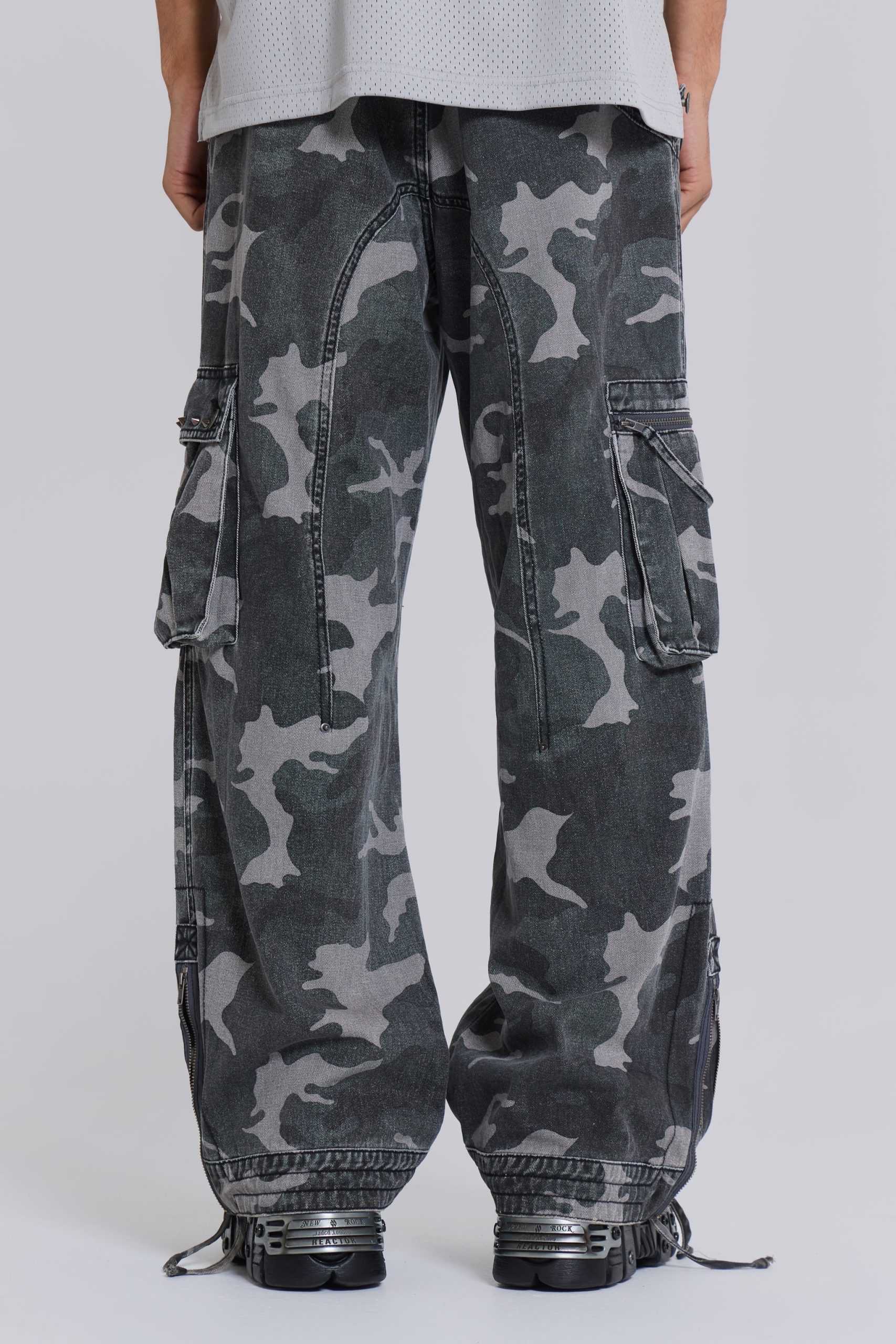 Jaded London Men’s Washed Black Trooper Camo Cargo Pant | Black