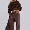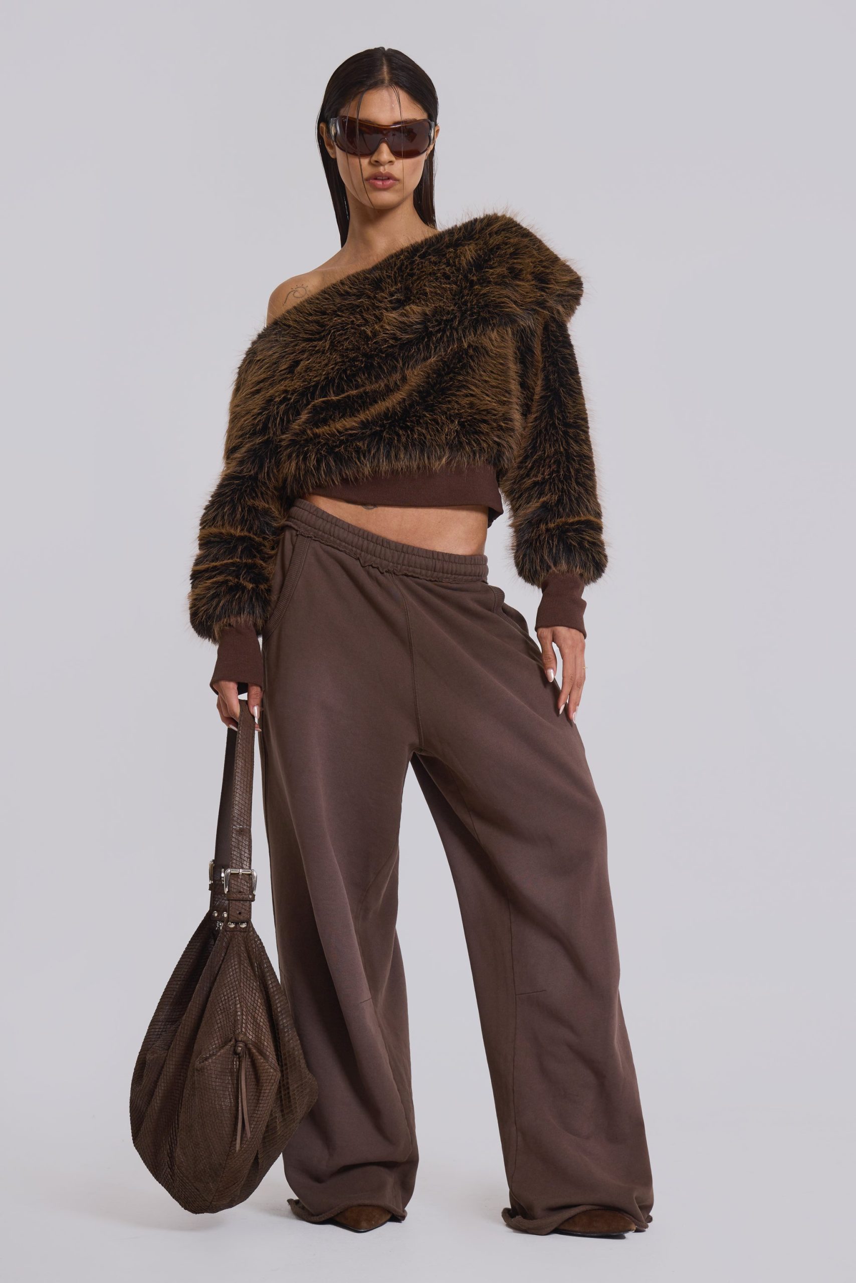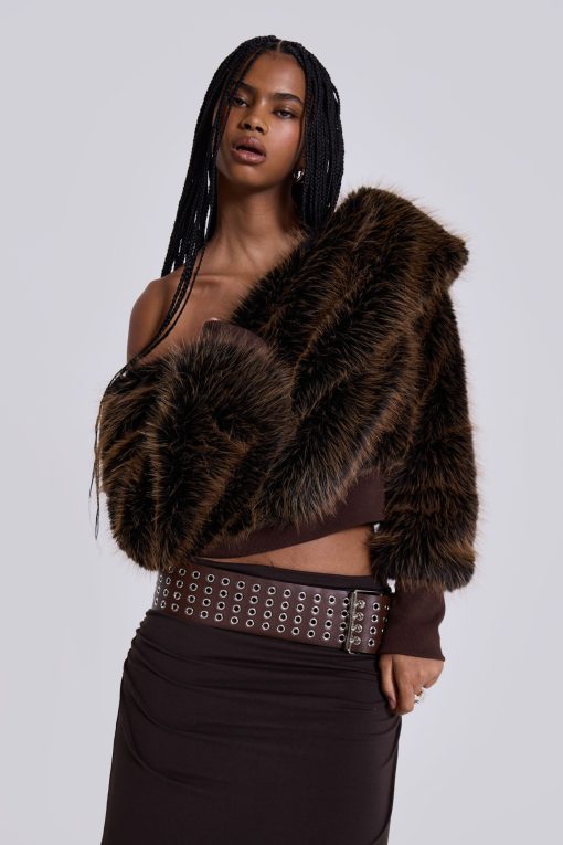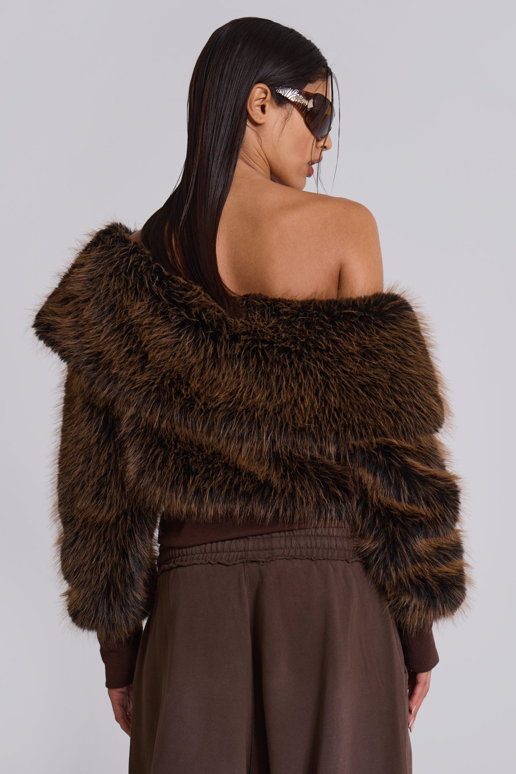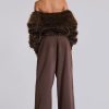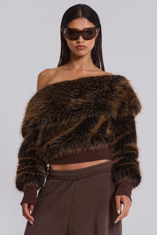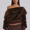Jaded London Women’s 316 Off The Shoulder Fur Jumper In Brown | Brown