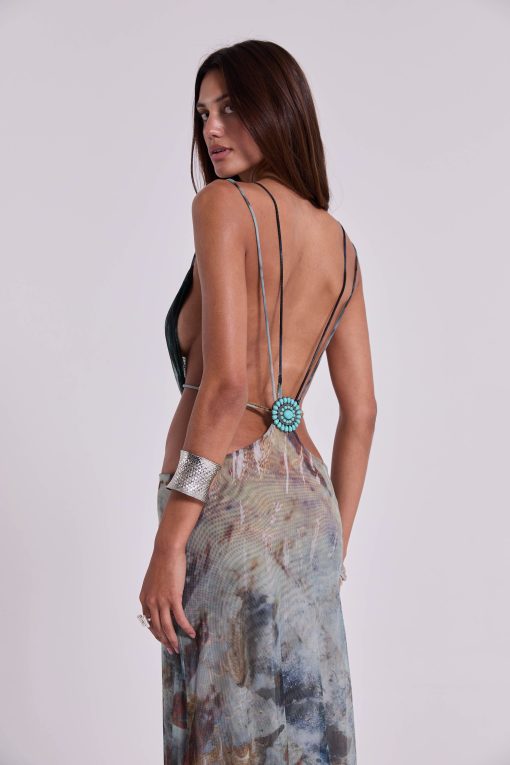 Jaded London Women’s Azariah Maxi Dress With Turquoise Trim | Grey