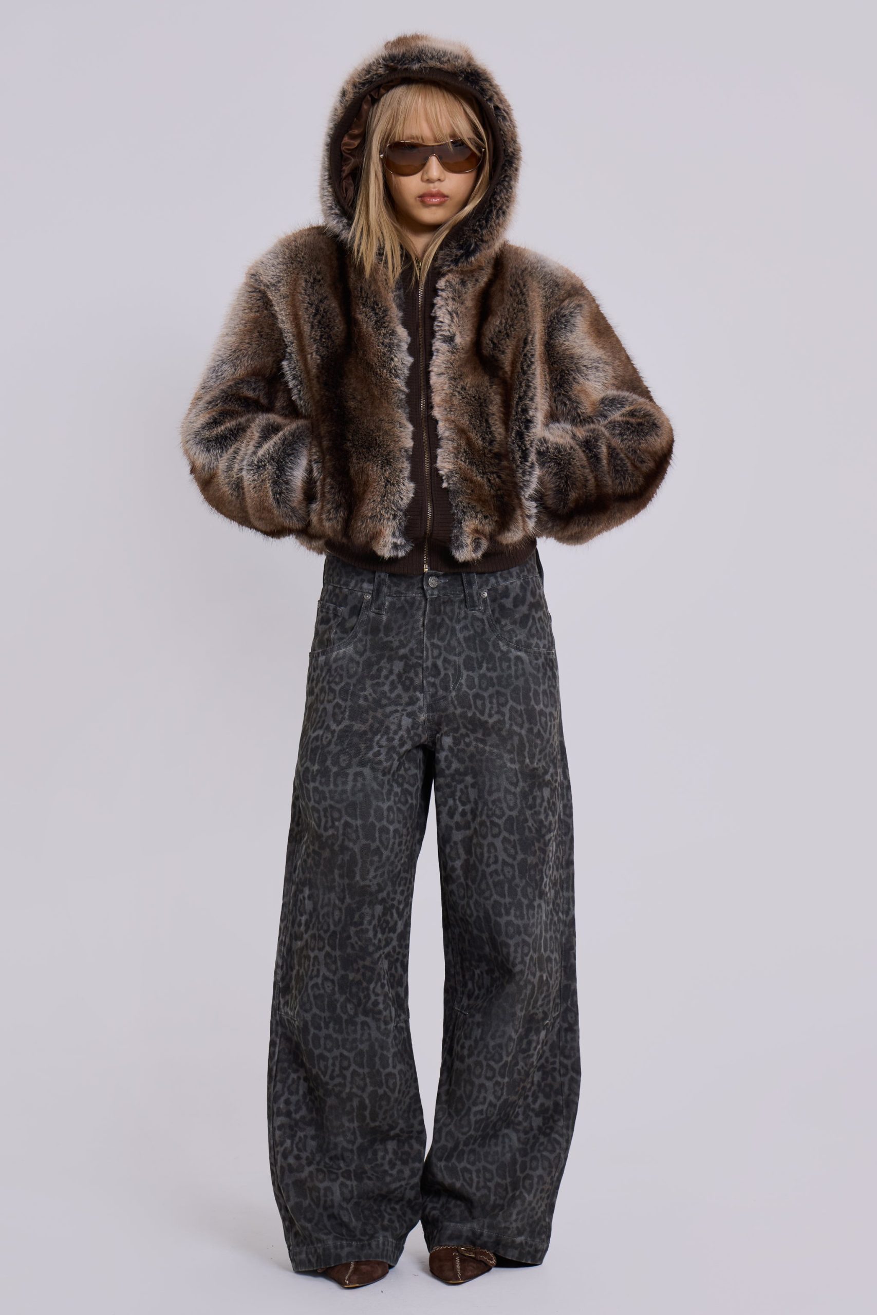Jaded London Women’s Bear Faux Fur Hooded Jacket | Brown
