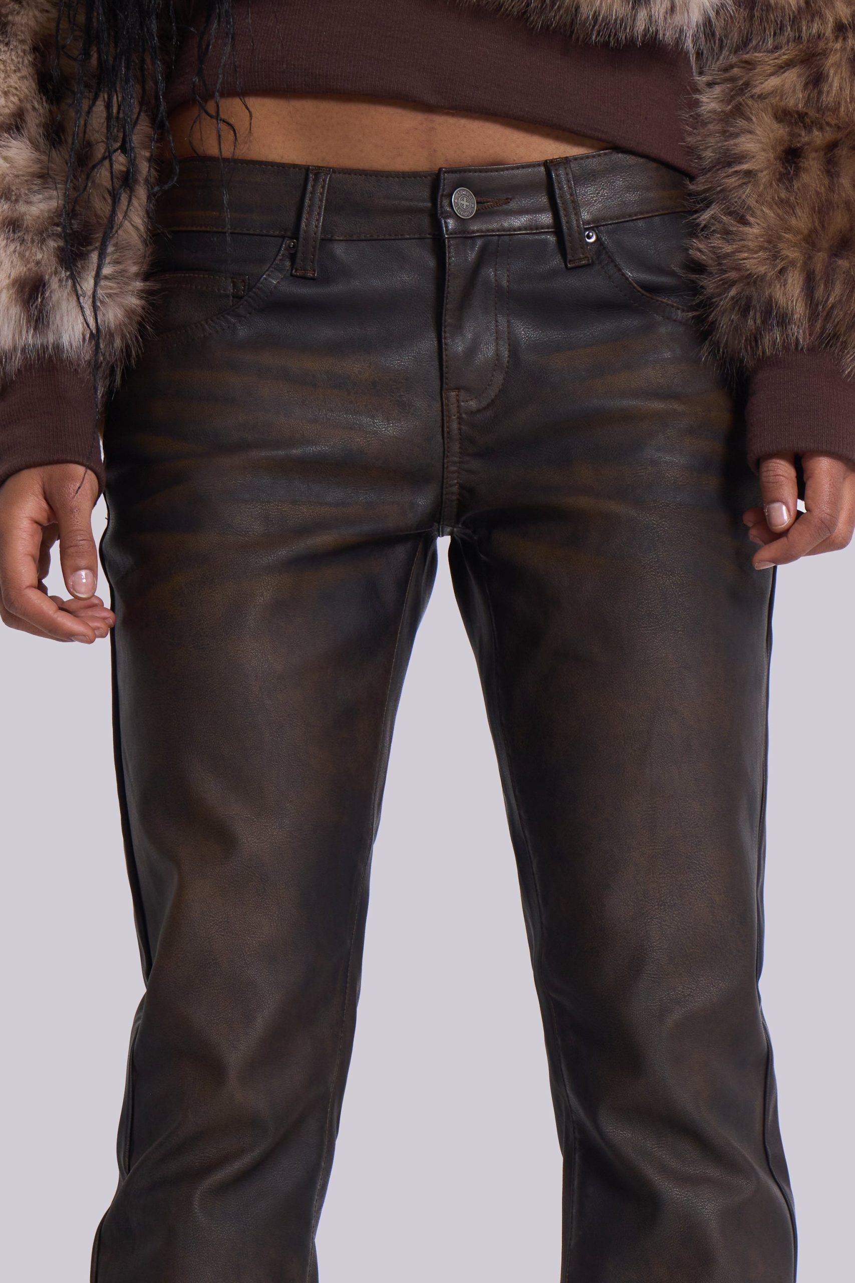 Jaded London Women’s Brown Cooper Pu Bootcut Jeans | Brown