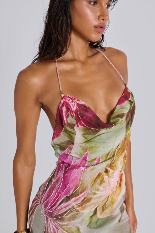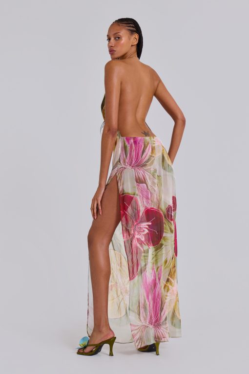 Jaded London Women’s Dahlia Hand-beaded Backless Chiffon Maxi Dress In Rosa | Multi