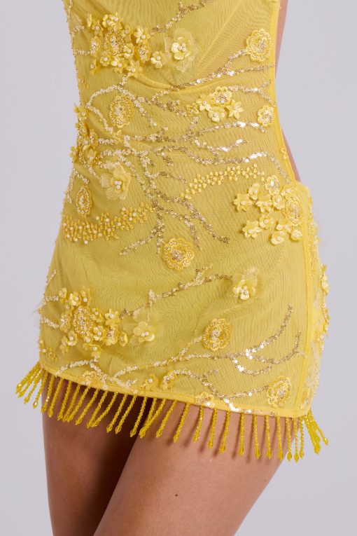 Jaded London Women’s Ellora Embellished Mini Dress In Solar | Yellow