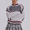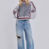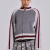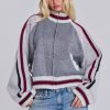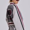 Team 85 Knitted Bomber Jacket. Team Jaded Knitted Zip Through bomber in a heavyweight chunky knit fabric and an oversized cropped fit. This jacket features a funnel neck collar with patch front pocket detailing.