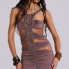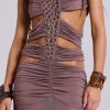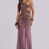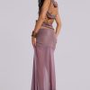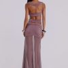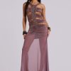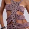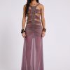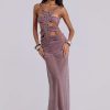 Hadassa Cut-Out Hand-Beaded Maxi Dress. Maxi dress with cut-out details in soft drapey jersey and powermesh with antique gold metal beads.