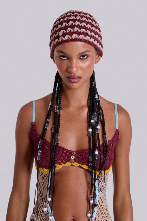 Jaded London Women’s Kalani Crochet Shell Hat | Burgundy