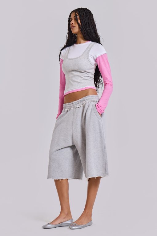 Jaded London Women’s Lexie Triple Layer Long Sleeve Top In Grey Marl | Grey Marl