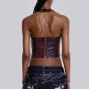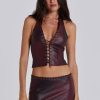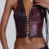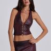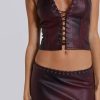 Crafted from a faux vegan leather fabric, the Lynx Corset Top features a corset-style fit with a lace-up front, concealed poppers button fastening at the neck and a zip up back for a secure fit. Complete with a whip stitch detail and princess seams create an refined silhouette.
