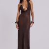Jaded London Women’s Moara Knit Plunge Maxi Dress | Brown
