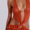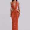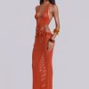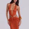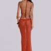 Crochet knit maxi dress with twist detail and beaded fringe detail