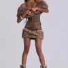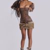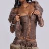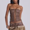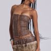Faux washed leather longline halter corset with eyelet and lace up details.