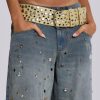 Osmium Studded Belt In Cream with studding and eyelets detail.