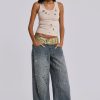 Due to trim studs take care when wearing. Over time metal trims can tarnish through wear and washing.