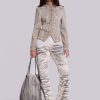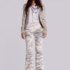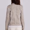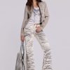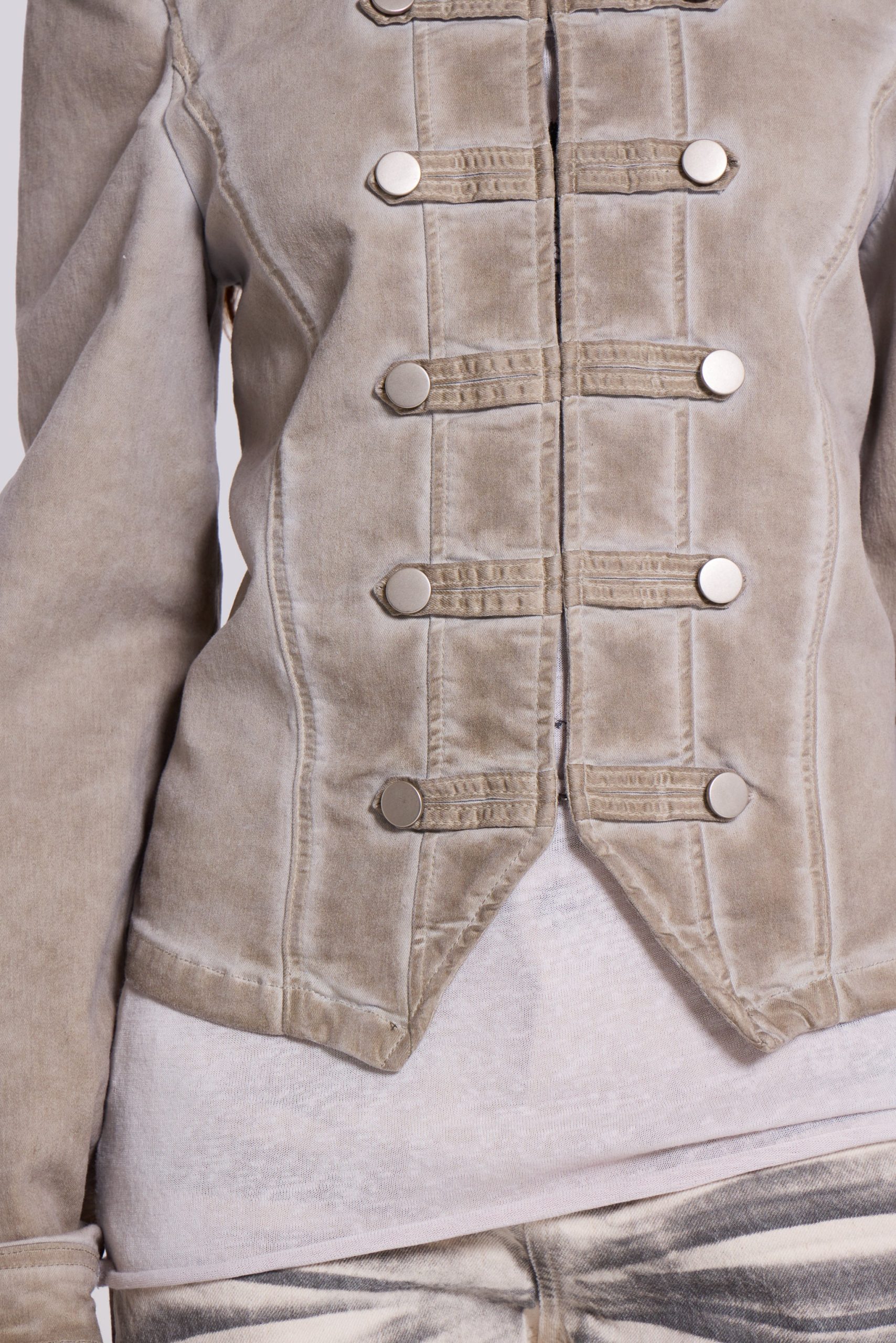 Elevate your wardrobe with the Rebel Jacket – This drummer style jacket has been designed in a shrunken fit and boasts an eye-catching placement dye for a dirty washed white colourway, complete with highlighted seams and antique silver hardware.