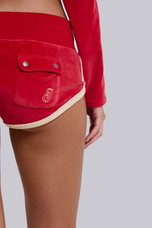 Jaded London Women’s Red Three Velour Mini Runner Shorts | Multi