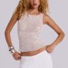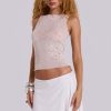 Jaded London Women’s Sana Embroidered Mesh Top | Cream