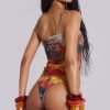 Printed bikini bottoms with multi colour Morrocan beads. Regular coverage fit.