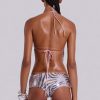 - Elasticated halterneck and chest tie straps in contrasting pink metallic