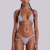 Jaded London Women’s Swim Zyra Grey Marl Popper Low Rise Bikini Bottoms | Grey