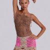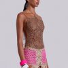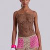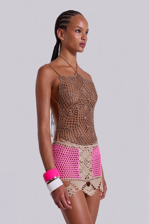 Jaded London Women’s Tahlia Backless Crochet Dress | Brown & Pink