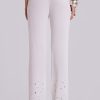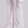 DescriptionWhite lightweight woven multiway skirt over trousers with stud and sequin embellishment. Skirt can button on and off to be worn separately.