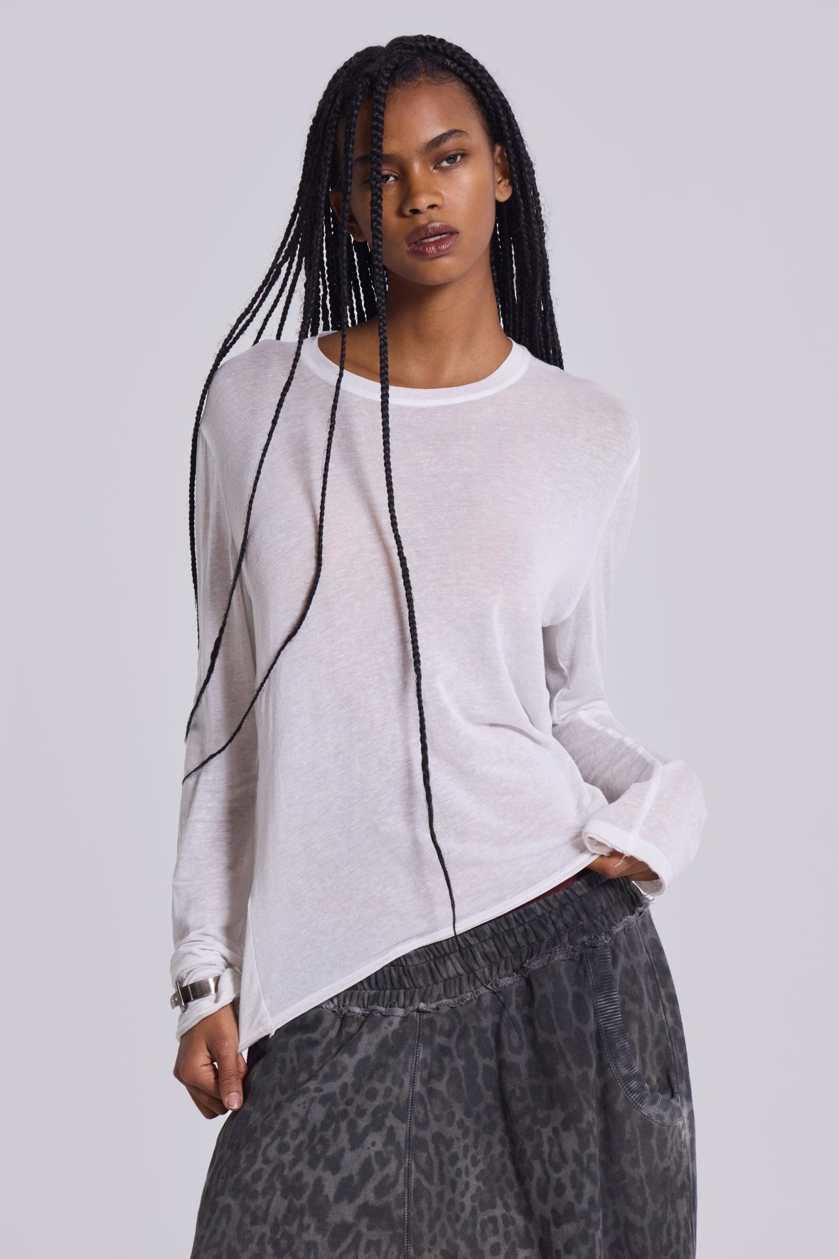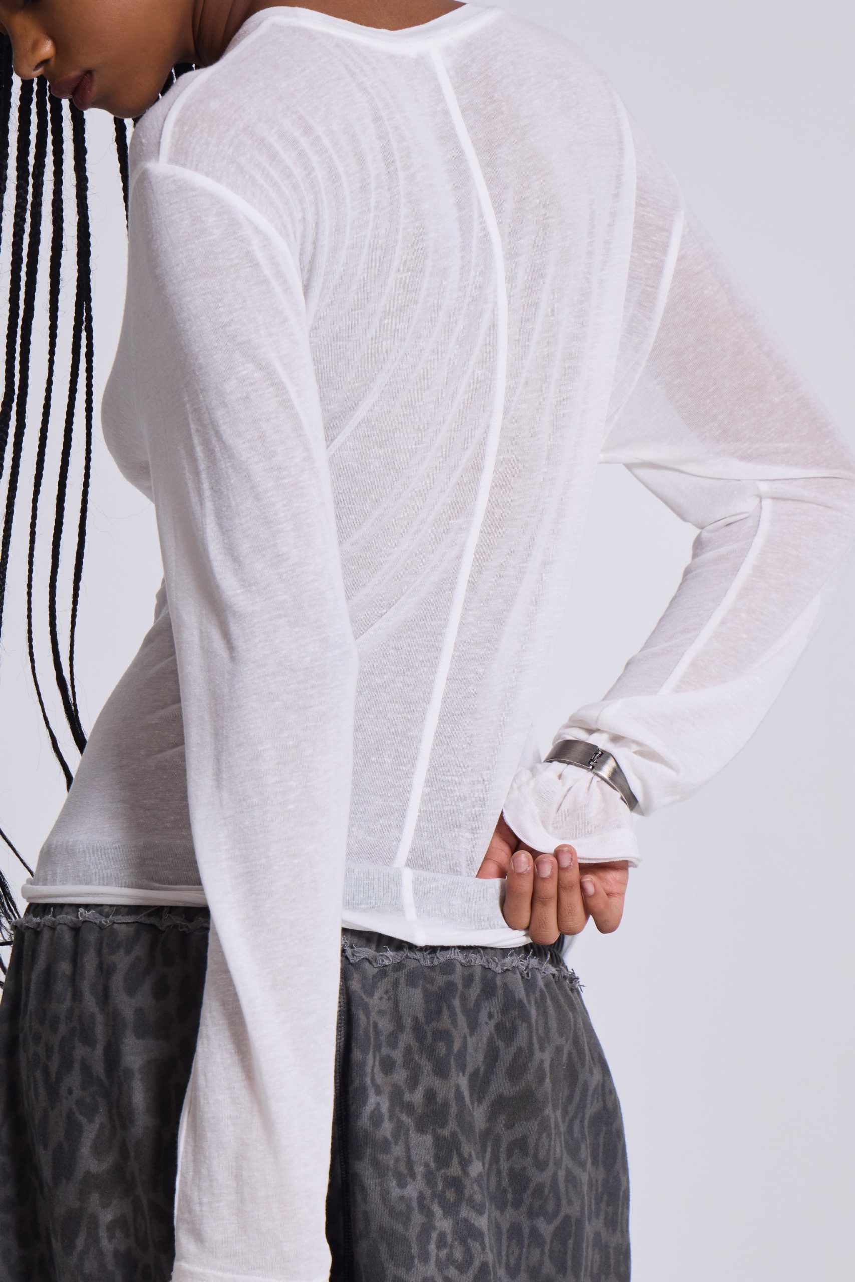 Crafted from a lightweight sheer fabric, the White Mist Long Sleeve provides the perfect layering piece. This top has a slightly cropped body with a twisted side seam detail.