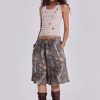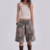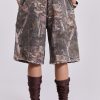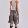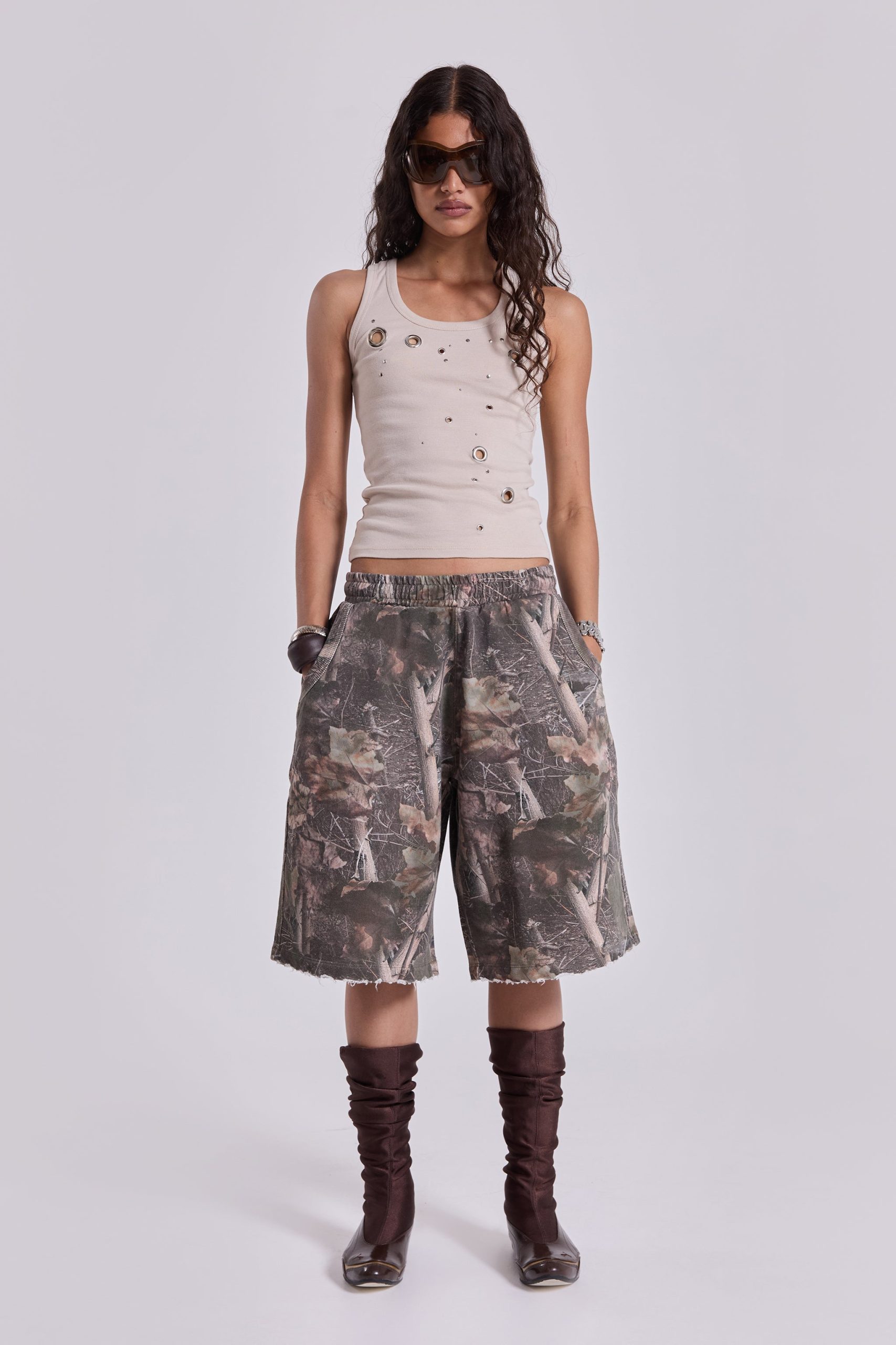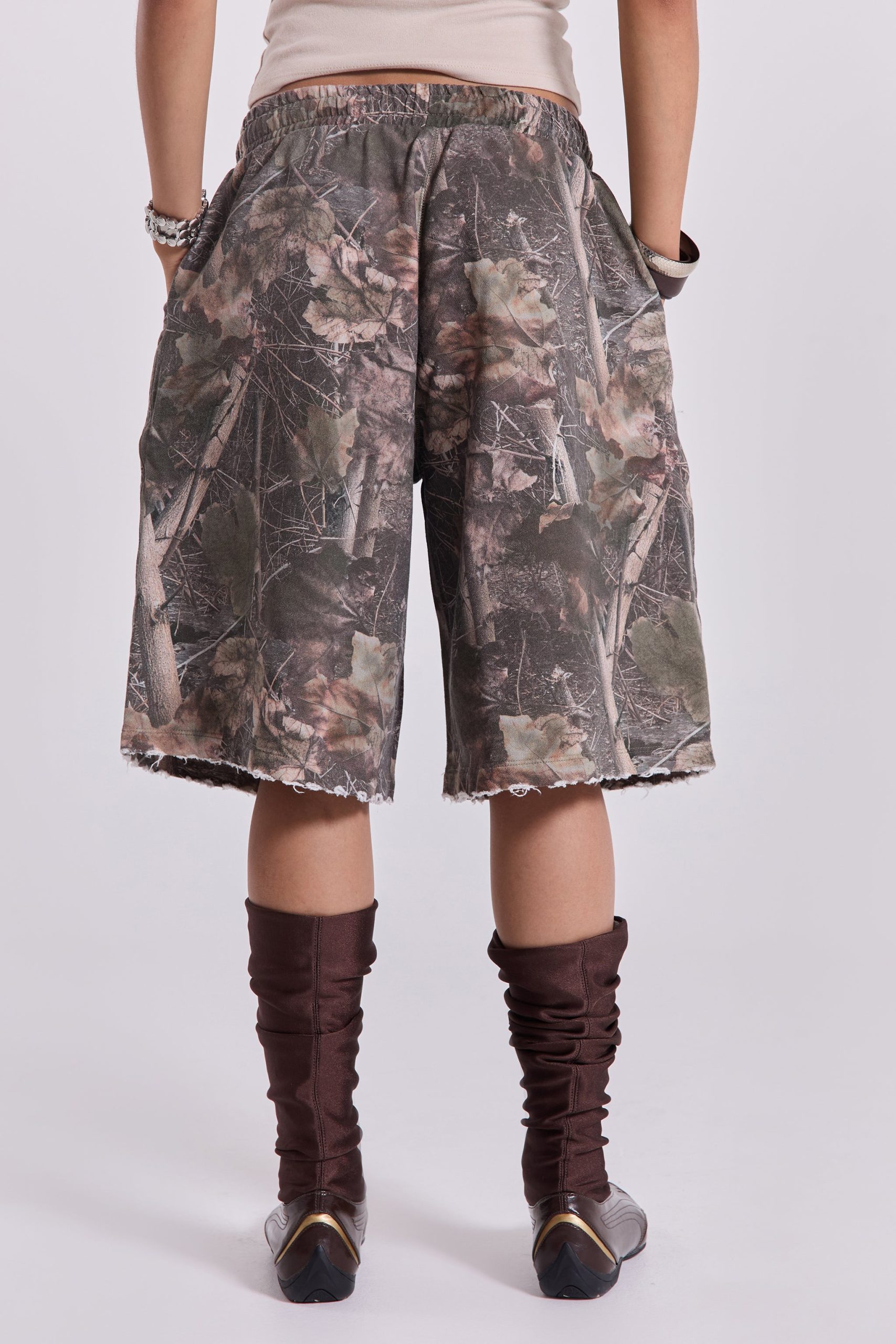 The Woodland Camo Monster Jogger Shorts are crafted from a fleece-back heavy sweat fabric boasting a super oversized fit, finished with raw-edge waistband details. These joggers are elevated with a length that falls just below the knee.